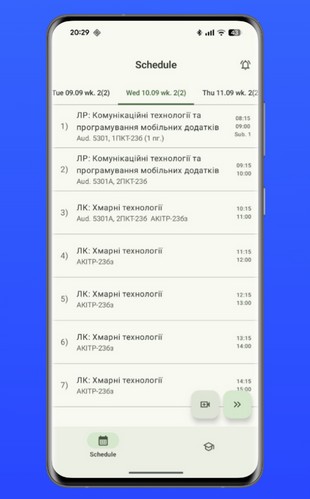 Мінімалістичний дизайн, основні функції - розклад, пряме підключення до Meet конференції зі студентами. Нові функції будуть додані в процесі експлуатації.