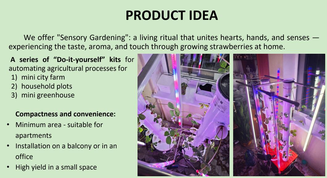 Проєкт поєднує гідропоніку, автоматичне освітлення та контроль мікроклімату, забезпечуючи стабільний урожай незалежно від сезону.