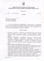 Відповідно до наказу ректора ВНТУ № 80 від 12 березня 2020 року із метою запобігання та поширення гострої респіраторної хвороби, спричиненої коронавірусом, на виконання Постанови Кабінету Міністрів України № 211 від 11 березня 2020 року та листа Міністерства освіти і науки України № 1/9-154 від 11 березня 2020 року в ВНТУ та його підрозділах з 12 березня 2020 року до 3 квітня 2020 року ...