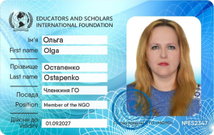 Членкиня ГО "МІЖНАРОДНА ФУНДАЦІЯ НАУКОВЦІВ ТА ОСВІТЯН"