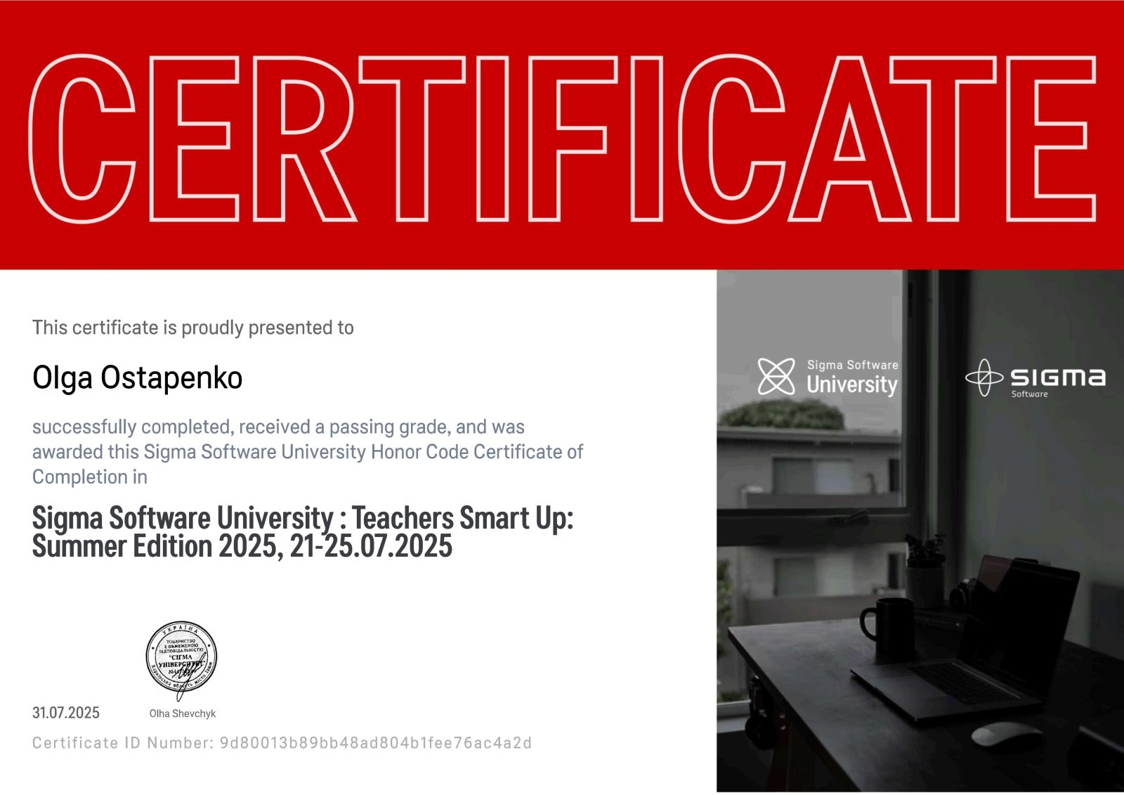 • Хобі: Психологія, коучинг, технічна англійська мова, штучний інтелект, кіберзахист та кібербезпека.