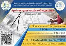 Спеціальність 191 Архітектура та містобудування (бакалавр) ВІДКРИТО!