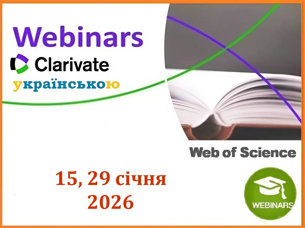 15, 29 січня 2026 року науково-технічна бібліотека запрошує вас на безкоштовні вебінари українською від компанії Clarivate.