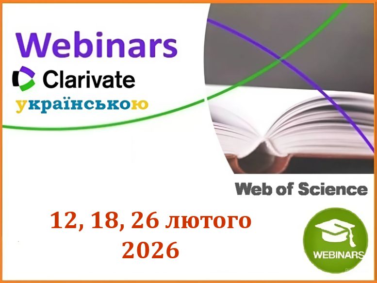 12, 18, 26 лютого 2026 року науково-технічна бібліотека запрошує вас на безкоштовні вебінари українською від компанії Clarivate та ДНТБ.