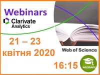 14-29 квітня 2020 року науково-технічна бібліотека запрошує вас на безкоштовні серії вебінарів російською мовою від компанії Clarivate Analytics про можливості платформи Web of Science та інших ресурсів компанії для наукової діяльності.