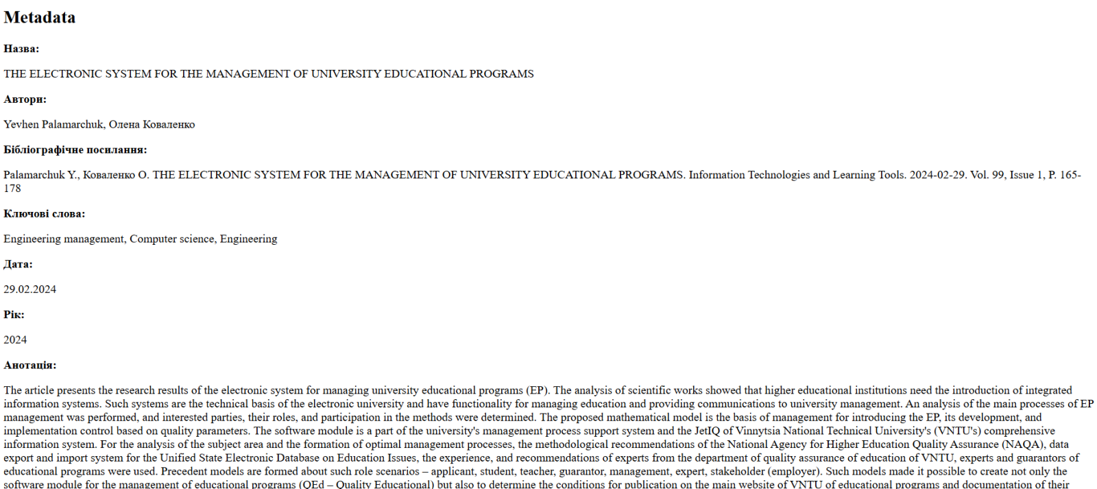 В персональному репозиторії розширена функція іпортувати статтю з наукометричних баз Scopus, Web of Science. Дякуємо за розширені функції команді JetIQ Євгену Паламарчуку, Дмитру Смольцу, Сергію Луговському, Олені Коваленко.