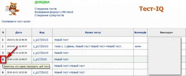 З таблиці тестів редактора testiq можна робити перехід у Монітор тестування, причому у ньому будуть показуватись лише записи, які стосуються проходження цього тесту.