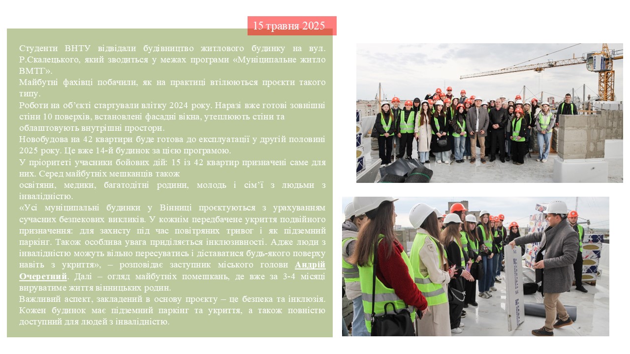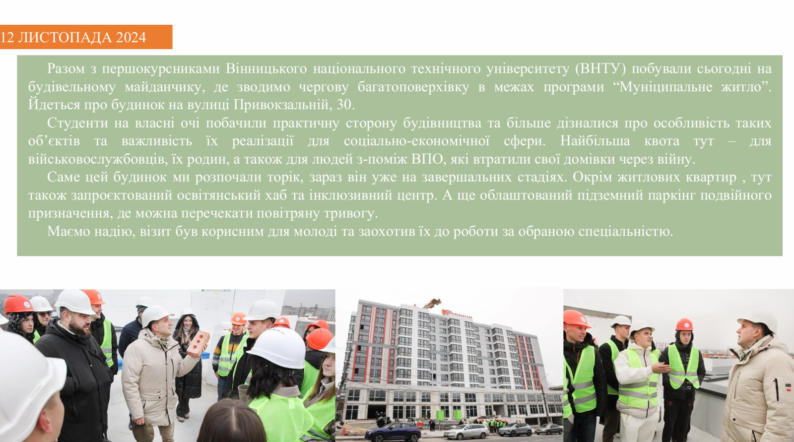 Студентам-будівельникам показали як у Вінниці зводять квадратні метри муніципального житла